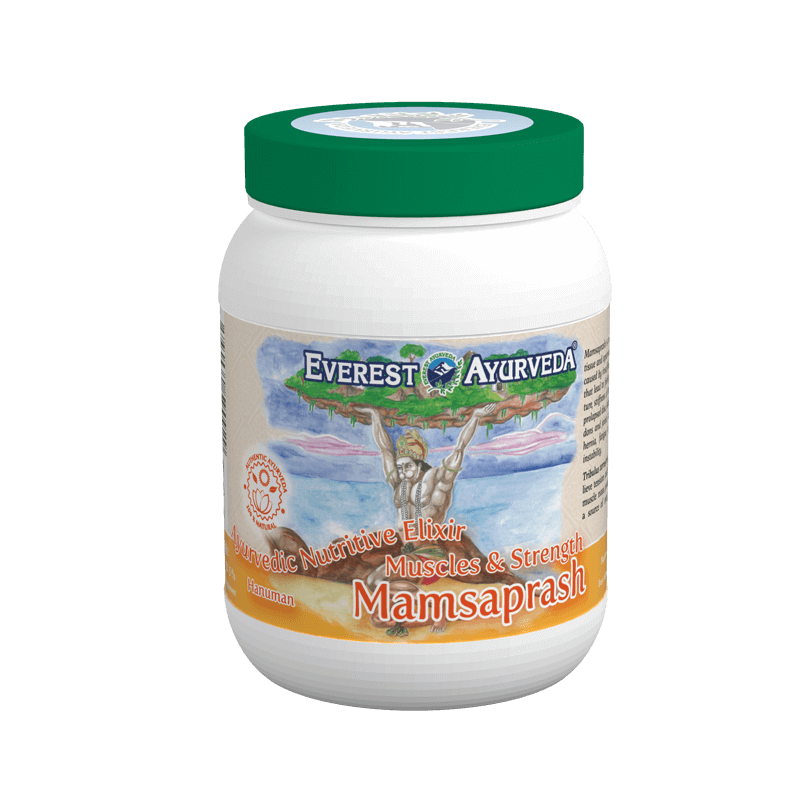 Mamsaprash ist eine nahrhafte Kräuterpaste für die Stärkung des Muskelgewebes und die Optimierung der körperlichen Kräfte. Eine Schädigung dieses Gewebes wird durch eine unzureichende Zufuhr von Eiweiß und einen unregelmäßigen Rhythmus bei der täglichen Ernährung verursacht. Sie kann sich als eine schlaffe Körperstruktur, unterentwickelte Muskeln, Muskelsteifigkeit, Koordinationsstörungen, Mandelentzündung, Bildung von Myomen, Hernie, Rückenschmerzen, Bandscheibenvorfall, Müdigkeit, Angst, Misstrauen und emotionale Instabilität zeigen.
